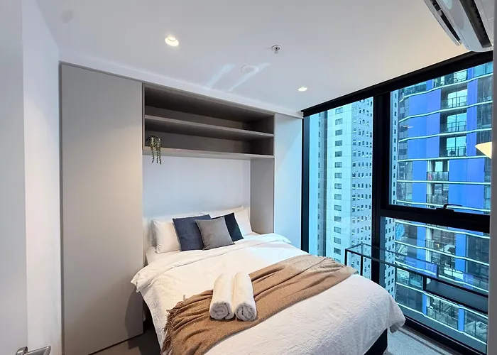 Appartement 2Br 2Ba Urban Sanctuary Views From 33Rd Flr M38 à Ville de Ville de Melbourne est situé à moins de 20 minutes à pied du Musée de l'immigration et à 2 km du Sanctuaire du Souvenir. Accueillant les clients avec une piscine couverte, la résidence se trouve non loin de la vieille prison de Melbourne.